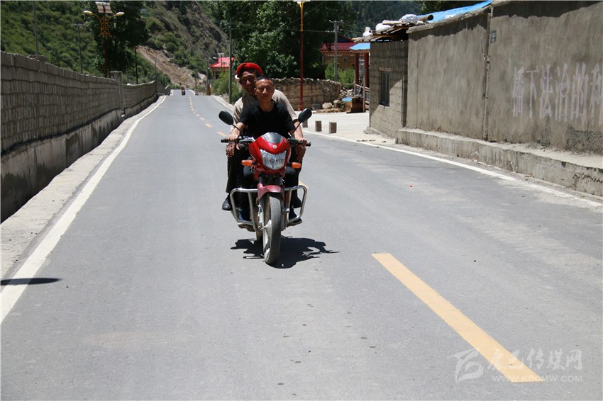 “以前村里沒公路,通鄉(xiāng)的也是一條‘土路’(機耕道),到縣城要兩個小時。因為路況不好,騎摩托車稍不注意就滑到路邊溝里了?!惫状宕迕襁冉q澤仁回想交通不暢帶來的不便,仍是心有余悸。