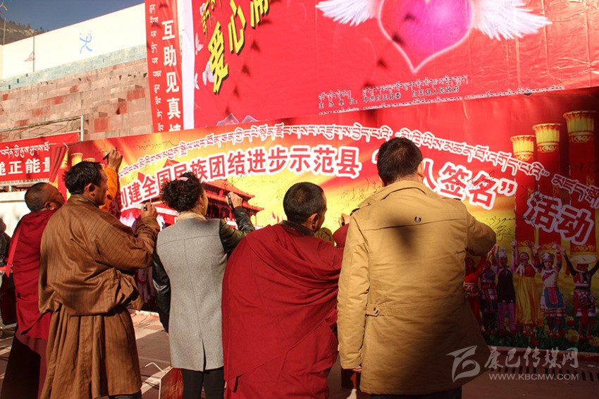 其實,在白玉,像澤稱降措這樣感人肺腑的故事絕非個案。采訪中,筆者細細梳理五年來白玉的創(chuàng)建舉措與成績,完全可以用“務(wù)實”“扎實”這四個字來形容。自2014年創(chuàng)建活動啟動以來,縣委、縣政府嚴格按照“三年創(chuàng)建、四年提升”要求,緊扣“八進活動、共建對子”兩個關(guān)鍵,聚焦“民族團結(jié)促發(fā)展、民族團結(jié)促穩(wěn)定、民族團結(jié)促民生”三大目標(biāo),采取“精準安排、精準施策、精心打造、精細管理”四項舉措,并通過層層簽訂目標(biāo)責(zé)任書和層層落實創(chuàng)建標(biāo)準、測評指標(biāo),進而形成了“黨委統(tǒng)一領(lǐng)導(dǎo)、黨政齊抓共管、部門各司其職、社會廣泛參與”的創(chuàng)建工作格局;采取“年度定方案、季度有督查、月月抓推進、層層重落實”的方式,通過召開專題會、動員會、現(xiàn)場會、督導(dǎo)會、匯報會等形式,抓問題、添措施、促整改、補短板、求提升,一系列動真碰硬的推進,使得創(chuàng)建工作由“虛”變“實”;按照“精準宣講、掛圖作戰(zhàn)、對單宣講、對村消號、定學(xué)式”的宣講思路,采取“縣到鄉(xiāng)、鄉(xiāng)進村、村入戶、寺廟與僧尼”四個面對面等方式,并結(jié)合常態(tài)化開展的“四下鄉(xiāng)”活動,廣泛學(xué)習(xí)宣傳黨的民族理論、宗教政策、法律法規(guī)以及各項惠農(nóng)惠民政策。五年來,全縣累計出動宣講服務(wù)人員1180人次,開展宣講宣教、“四下鄉(xiāng)”活動以及民族團結(jié)“八進”活動多達988場次,覆蓋基層干部、農(nóng)牧民群眾和及寺廟近8萬人次,發(fā)放各類宣傳資料2.3萬余份、圖書光盤4500余本(張),贈送各種書籍4130余冊,放映電影152場次;在主要街道、繁華路段、出租車頂屏、燈箱燈桿以及干線公路沿線堡坎,設(shè)置LED屏、宣傳牌、滾動標(biāo)語和墻體標(biāo)語,推送各類創(chuàng)建信息上萬余條,在各機關(guān)、單位、醫(yī)院、學(xué)校、寺廟、鄉(xiāng)鎮(zhèn)、村組(社區(qū))設(shè)置民族團結(jié)標(biāo)語、宣傳櫥窗、展板和文化墻,推出各類宣傳欄2145個、宣傳展板 435個;在縣級宣傳平臺開設(shè)專欄,完成各類主題宣傳300余場次;舉辦創(chuàng)建“萬人簽名”、鍋莊節(jié)、演講比賽、籃球友誼賽、知識競賽、文藝演出等各類民族團結(jié)主題活動近20場,實現(xiàn)了創(chuàng)建宣講宣傳宣教全方位、多層面、立體式和廣覆蓋;切實將民族團結(jié)工作與脫貧攻堅、基層黨建、群眾工作、鄉(xiāng)村治理、依法治縣等有機結(jié)合,大力開展干群結(jié)對認親、干部聯(lián)寺聯(lián)僧、支部共建共創(chuàng)以及警民共建等活動;切實在廣大農(nóng)牧民群眾、幫扶援建隊伍、宗教寺院、學(xué)校師生、企業(yè)以及部隊中發(fā)現(xiàn)典型、宣傳典型,進而在全縣上下形成了“學(xué)先進、趕先進、當(dāng)標(biāo)兵”的濃厚氛圍;采取政策傾斜、整合項目、配套資金等措施,狠抓示范點規(guī)范化建設(shè)。目前,全縣所有鄉(xiāng)(鎮(zhèn))、縣級黨政機關(guān)、武警部隊,45%以上的村(社區(qū))、企事業(yè)單位和寺廟已成為民族團結(jié)進步示范地區(qū)或示范單位;……精準發(fā)力、持續(xù)給力的創(chuàng)建活動,有效形成了創(chuàng)建活動“人人參與、人人推動、人人負責(zé)、人人共享”的喜人局面。