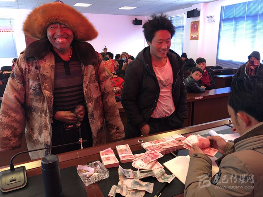 2018年,村上經(jīng)營的超市有了7萬元的收入,將超市7萬元和28戶貧困戶養(yǎng)牦牛每戶上交集體經(jīng)濟(jì)的260元共計(jì)77280元作為集體經(jīng)濟(jì)的分紅,分配方式為總金額的20%按40戶貧困戶戶均386.4元進(jìn)行分配、剩余80%按全村村民779人按人均79元進(jìn)行分配,實(shí)現(xiàn)了貧困戶得到兩次分紅。