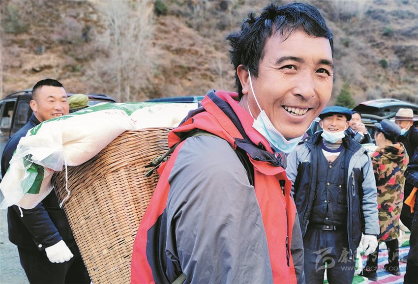 在去往格什扎鎮(zhèn)二道橋村的路上,市民降初將私家車??吭诼放?,拿出相機拍著眼前的美景,筆者停下車走上前與他交談。降初很健談,他告訴筆者,由于受疫情的影響,今年許多市民選擇在自己家里過年。臘肉、香豬腿、酸菜等是春節(jié)必備的美味佳肴?!百I得放心,才吃得放心嘛!”降初打開車子的后備箱,指著里面滿滿的年貨笑著說。