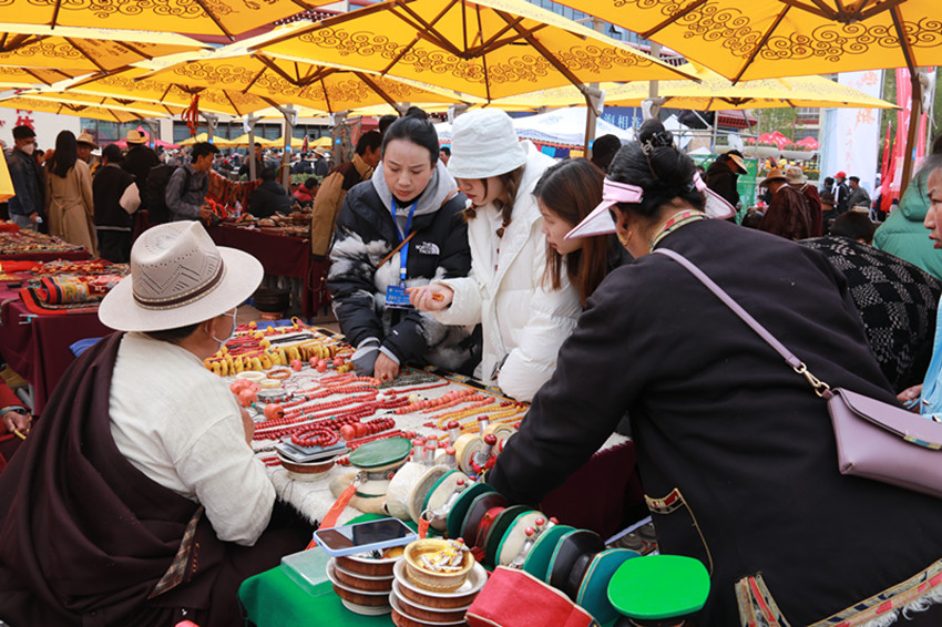 “這個(gè)銅鍋?zhàn)畹投嗌倌艹??”“這個(gè)藏刀上面的珠子是真的么?”……整整一天,羅布林廣場(chǎng)門庭若市、人聲鼎沸,詢問聲、報(bào)價(jià)聲、討價(jià)聲充斥在市集各個(gè)角落。來(lái)自甘肅省甘南州卓尼縣的商人嘎藏在古玩交易博覽活動(dòng)展覽兩日,就達(dá)成26萬(wàn)元的交易額。據(jù)他介紹,從受邀參加活動(dòng)到現(xiàn)場(chǎng)展示,都有當(dāng)?shù)毓ぷ魅藛T聯(lián)系對(duì)接,不僅免費(fèi)提供展位,還有公安干警現(xiàn)場(chǎng)維護(hù)安全和秩序,更有當(dāng)?shù)卣刻焖蛠?lái)午餐、晚餐和飲用水,參加此次古玩交易博覽活動(dòng)很安心、舒心和放心。