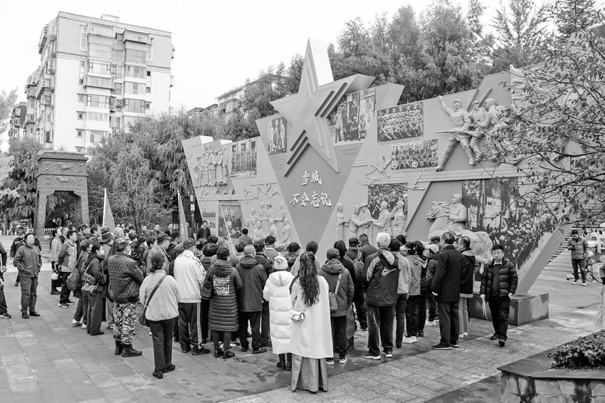 圖為革命后代參觀瞻仰“雪域不會忘記——康定和平解放暨南下干部入康紀念浮雕墻”。