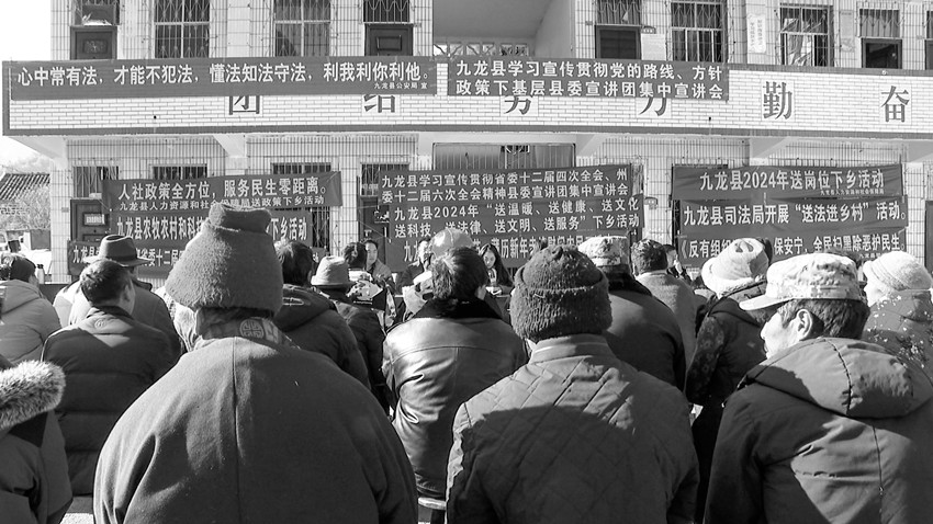 本網(wǎng)訊 1月12日至14日,九龍縣委宣傳部組織縣司法局、縣農(nóng)牧農(nóng)村和科技局、縣衛(wèi)生健康局等部門,聯(lián)合開展了學(xué)習(xí)宣傳貫徹習(xí)近平新時(shí)代中國特色社會主義思想、省委十二屆四次全會精神、州委十二屆六次全會精神宣講暨“七下鄉(xiāng)”暖冬行動。