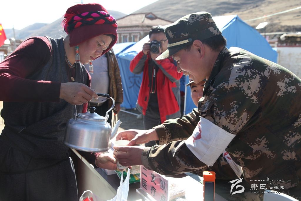 一位媒體同仁在接到她們送上的酥油茶時(shí)說(shuō):“這酥油茶特別香,熱乎乎的,真的很好喝,從嘴里暖到了心里。”四川部隊(duì)武警二支隊(duì)的軍醫(yī)陳海波告訴記者:“今天早上就看見(jiàn)她們?cè)谶@里送酥油茶,她們一直穿梭在人群里,我們也拿到了她們送上的酥油茶。心里特別的感動(dòng),有這樣的農(nóng)牧民,我們?yōu)榱怂麄冊(cè)倏嘣倮垡灿X(jué)得值得。”