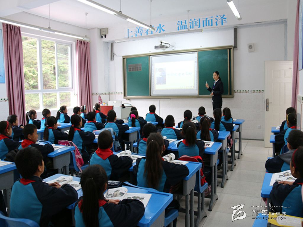 在窗明幾凈的教室里,老師站在講臺一旁,學(xué)生們目光所及之處,是電子白板里另一位在老師滔滔不絕地授課的畫面——這是10月21日,記者在康定回民小學(xué)六年級1班看到的場景,電子白板中授課的,是成都實驗小學(xué)的一位語文老師。