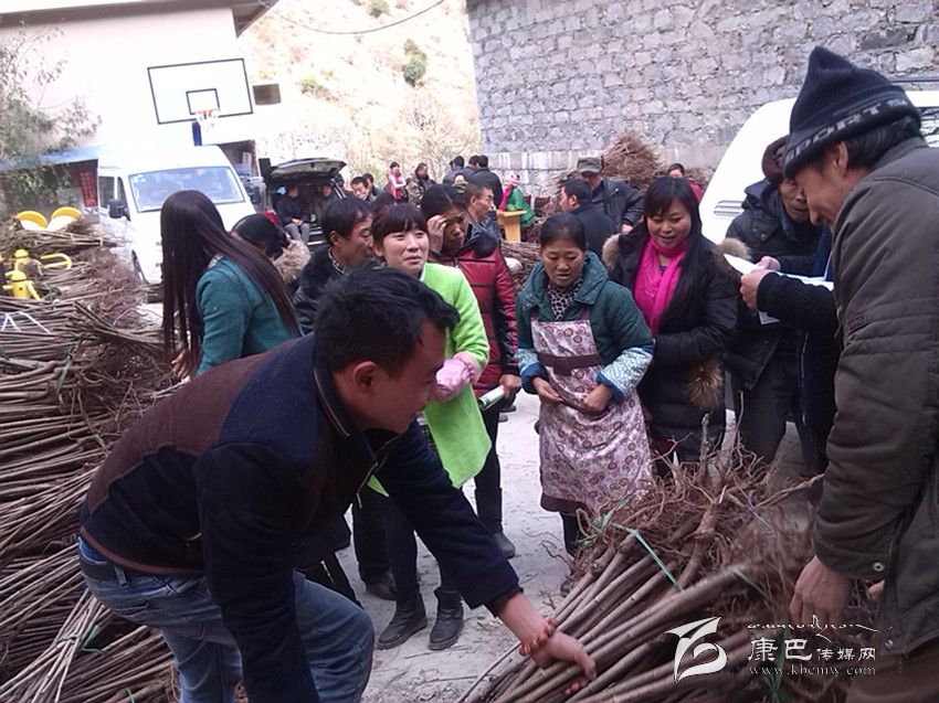康定市羊廠(chǎng)村民踴躍領(lǐng)取大櫻桃樹(shù)苗。
