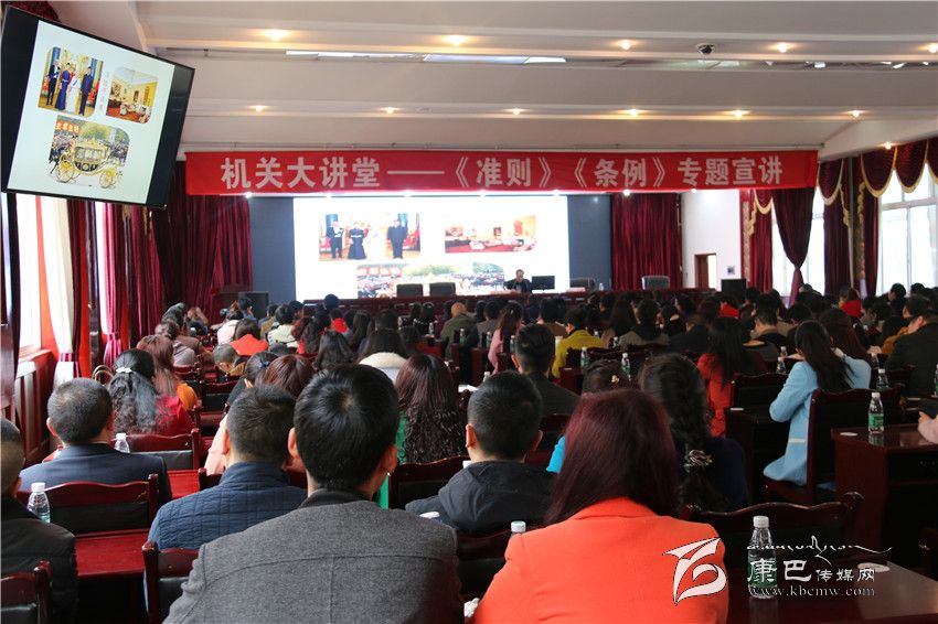 本網(wǎng)訊(記者 宋志勇 文/圖)為推動州直機(jī)關(guān)各基層黨組織和廣大黨員干部深入學(xué)習(xí)、宣傳、貫徹兩項法規(guī),準(zhǔn)確把握“兩項法規(guī)”的內(nèi)涵和精神實質(zhì),真正把黨規(guī)黨紀(jì)的權(quán)威樹起來、立起來、執(zhí)行到位。4月6日上午,州直工委舉辦“機(jī)關(guān)大講堂”——貫徹學(xué)習(xí)《中國共產(chǎn)黨廉潔自律準(zhǔn)則》和《中國共產(chǎn)黨紀(jì)律處分條例》專題宣講會,來自州級機(jī)關(guān)、省屬單位科級以下黨員干部共300多人聆聽了講座。