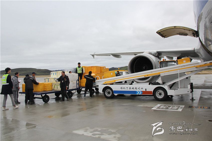 成箱的松茸被運(yùn)上稻城亞丁機(jī)場(chǎng)當(dāng)天的航班。 康定機(jī)場(chǎng)集團(tuán)公司供圖