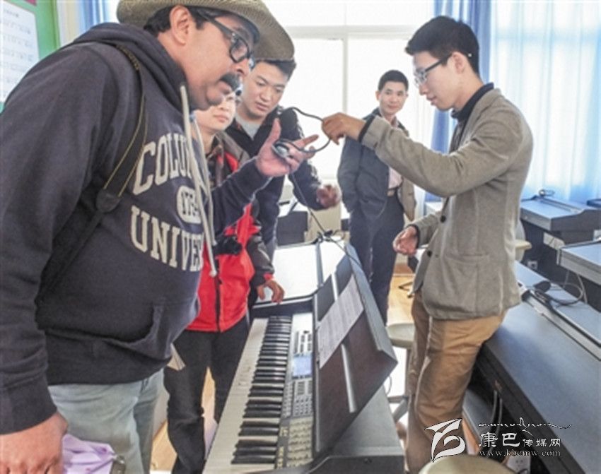 隨后,達(dá)哈爾·阿斯毫克一行來到教學(xué)區(qū),通過參觀學(xué)生閱讀室、多功能音樂訓(xùn)練室、多媒體教室了解了該校的硬件設(shè)施建設(shè)和綜合發(fā)展情況。在學(xué)生閱讀室,達(dá)哈爾·阿斯毫克和同伴們認(rèn)真聽取了學(xué)校工作人員關(guān)于閱讀室內(nèi)圖書種類、圖書使用情況的介紹;當(dāng)發(fā)現(xiàn)其中有不少圖書是鄉(xiāng)城的地方性著作時,一名尼泊爾記者當(dāng)即感慨“太了不起了!”。親自試用教室里陳放的電子鋼琴之后,印度《西隆時報》德里站首席記者納亞克表示,“眼前所看到的一切然我對中國教育的發(fā)展感到驚奇。”他這一說法也很快引起同行者的共鳴。