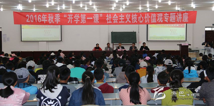 本網訊(記者 宋志勇 文/圖)“聆聽講座是我步入高中的第一堂課,讓我對社會主義核心價值觀有了初步了解。期待在高中階段有愉快的學習氛圍,同學之間相互團結、相互進步,最終實現自己的大學夢。”這是9月1日下午,由州委宣傳部聯合州教育局在康定中學開展的2016年秋季“開學第一課”社會主義核心價值觀專題講座,剛剛考入該校高中1年級6班,來自丹巴縣15歲的學生羅麗蓉興奮地對記者說。