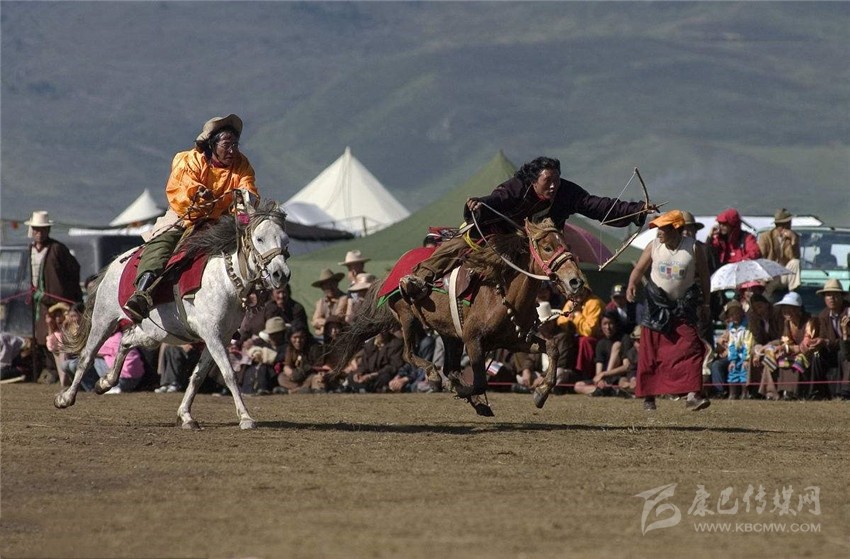賽馬活動(dòng)中的分耐力賽、小走賽、馬術(shù)表演等,馬術(shù)表演有馬背倒立、飛馬射擊、馬肚藏身、俯身拾哈達(dá)等項(xiàng)目。驚險(xiǎn)刺激的賽馬,是充分展示藏區(qū)群眾健壯、靈巧和勇猛、膽大的一項(xiàng)活動(dòng),也是當(dāng)?shù)厍鄩涯瓯绕雌潴w魄、智慧和膽識(shí)的舞臺(tái),對(duì)年輕小伙兒來(lái)說(shuō),這還是一個(gè)捕獲心儀的姑娘的芳心的絕好時(shí)機(jī)。所以,在康巴地區(qū)的賽馬活動(dòng)始終都保持著精彩、激烈的特征。