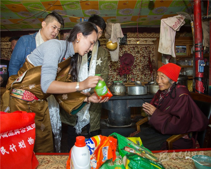 為了及時將物資送到群眾手中,公益小組一行當日凌晨4點便從成都出發(fā),于下午1點到達走訪地石渠縣。隨后,公益小組不顧舟車勞頓,堅持走訪了10戶此次“新牧民養(yǎng)成計劃”示范家庭,為他們送上了生活禮包及文明禮包,并送上了節(jié)日的祝福。年過七旬的卓嘎是本次“新牧民養(yǎng)成計劃”示范戶之一,體弱多病的她堅持要迎接公益小組的到來,并獻上哈達。收到物資后她激動地說,兩年前華僑城來到石渠縣,為他們帶來了新棉被,那個冬天他們一點都不冷,現(xiàn)在又送來了糧食和生活用品,讓他們可以過上更好的生活。