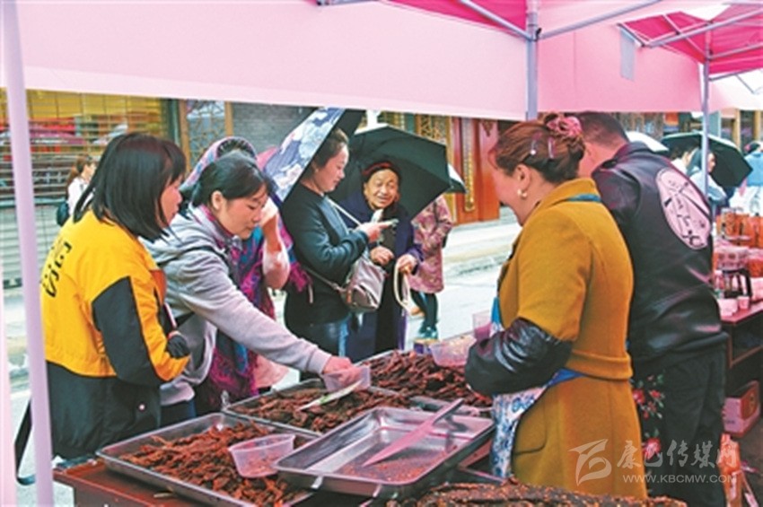 “給我來兩斤干牛肉?!庇浾唏v足陳三鍋莊展區(qū),來自成都的陳女士正在購買我州特色牦牛肉產品。