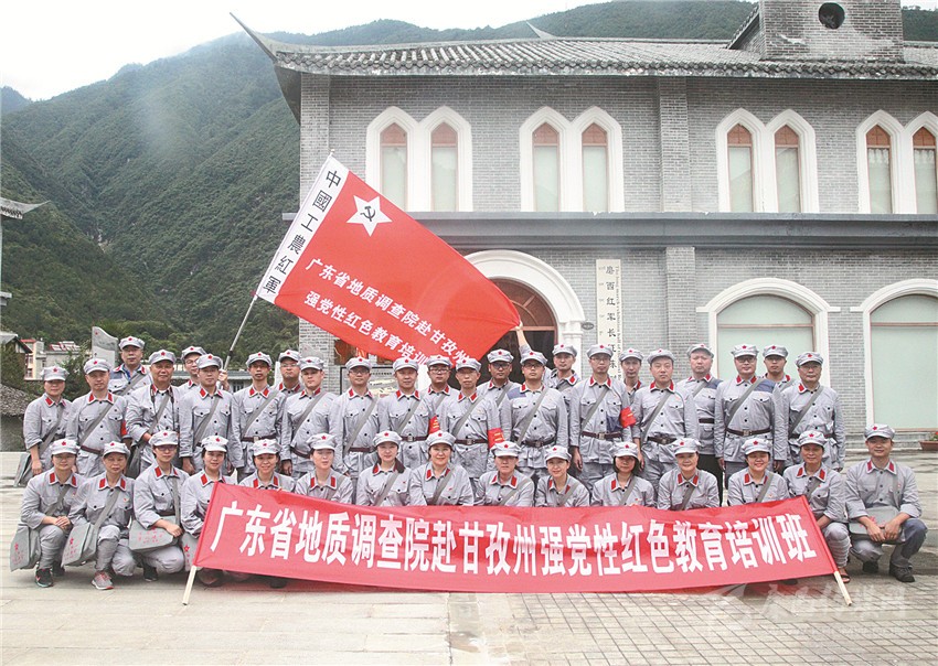 廣東地質(zhì)調(diào)查院紅色黨性教育培訓(xùn)班在磨西會議紀念館合影。