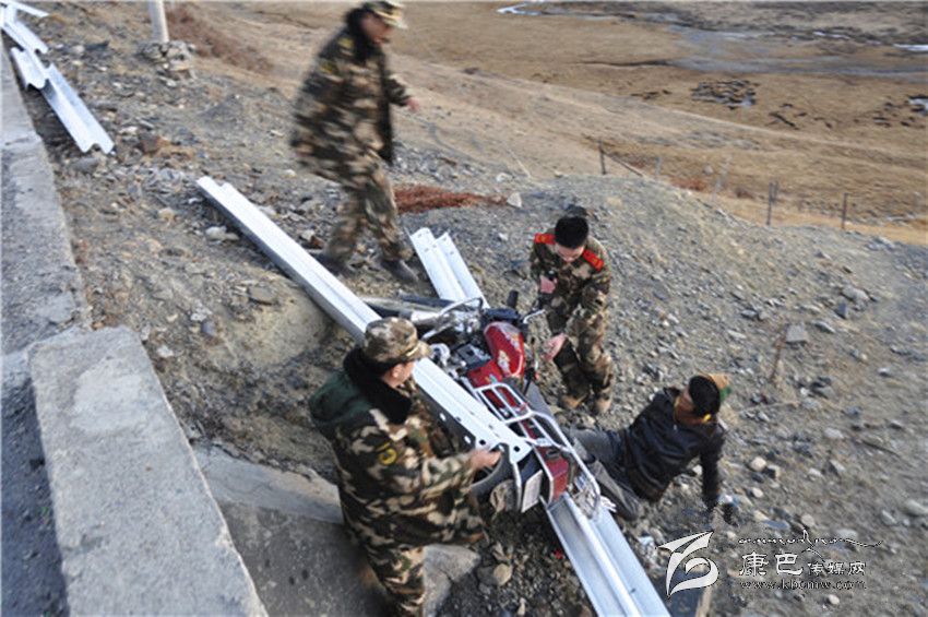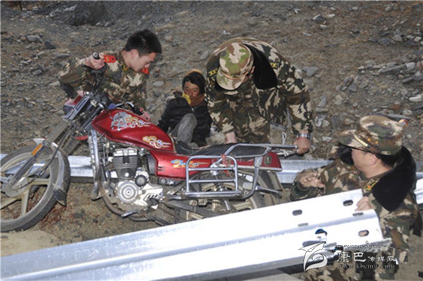 11月29日,甘孜州消防官兵在抗震救災(zāi)途中,發(fā)現(xiàn)一名騎摩托車的青年摔倒在5米高的路基下,右腿被死死被壓住不能動彈。據(jù)了解,消防官兵結(jié)束道孚縣中古村安置點(diǎn)消防安全檢查,準(zhǔn)備返回祖慶學(xué)校安置點(diǎn),行駛至塔公鄉(xiāng)海拔4000米左右處,發(fā)現(xiàn)事發(fā)摩托車就在消防官兵所乘車輛前10米處。駕駛?cè)藛T是一名藏族青年,在他發(fā)動摩托車時,轉(zhuǎn)眼就摔倒掉下公路路基。