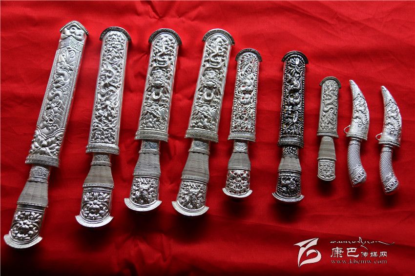 段承長(zhǎng)開(kāi)創(chuàng)的“九龍·飛鷹”刀品牌從2009年起已經(jīng)連續(xù)兩屆被評(píng)為甘孜州知名商標(biāo)。九龍縣民族工藝藏刀“飛鷹刀”始創(chuàng)于公元1902年,至今已有一百多年的歷史,段承長(zhǎng)是家族第三代傳承人。經(jīng)過(guò)幾代人的反復(fù)研究和不斷努力,已經(jīng)將“飛鷹刀”這種帶有民族特色的工藝藏刀,打造成為了民族服飾裝飾以及生活必須為主要用途的工藝品,并且具有一定的收藏價(jià)值。在九龍做客,主人家視你為貴客,那么在你離開(kāi)之際必將贈(zèng)送你一把“飛鷹刀”,以代表珍貴之意。在九龍本地,由于“飛鷹刀”鍛打精致、鐫刻細(xì)膩、色彩奪目、并附有藏文,系有五顏六色刀穗,形成別具一格的藏族工藝品。在朋友喬遷、結(jié)婚或喜生嬰兒時(shí),送上一把“飛鷹刀”會(huì)令主人感到格外高興。