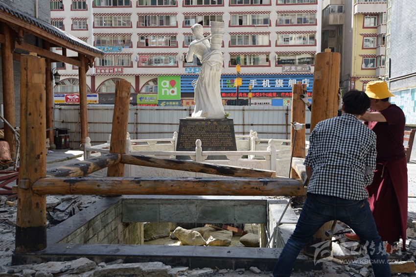 7月5日,夏日艷陽照耀下的康定城中,散步的人們簇擁在水井子藝術(shù)景觀改造提升施工現(xiàn)場議論紛紛。