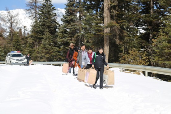 因近日天氣變化浪中村路面積雪過多,工作組棄車步行手提贈(zèng)送物資前往浪中村,到達(dá)浪中村后,工作組了解結(jié)對(duì)戶生產(chǎn)生活情況、贈(zèng)送棉被并向村民宣講脫貧攻堅(jiān)政策。