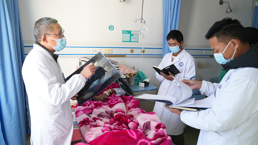 彭勇和彭措是鄉(xiāng)城縣本地的兩名外科醫(yī)生,也是藍(lán)忠榮的“徒弟”。為了提高帶徒效率,藍(lán)忠榮和他倆簽訂了對(duì)口支援“師帶徒”協(xié)議書,明確了個(gè)性化培養(yǎng)目標(biāo)和規(guī)范診療操作內(nèi)容,對(duì)常見病多發(fā)病診治、危重癥急癥處理等相關(guān)知識(shí)進(jìn)行教學(xué)指導(dǎo)。在藍(lán)忠榮的指導(dǎo)下,彭勇和彭措先后掌握了肌腱吻合術(shù)、橈骨骨折整復(fù)、石膏外固定等醫(yī)療技術(shù)。