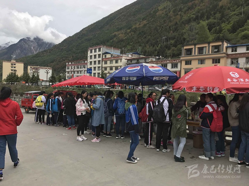那么真實情況到底如何呢?7日,記者專門來到康定中學(xué)走訪調(diào)查。記者搭乘出租車前往學(xué)校,途中司機卻回應(yīng)“康中校門口那一段全是賣炸洋芋、炸雞腿的攤攤,車子根本開不過去,只能提前下車。”當(dāng)記者步行過橋到達校門口路段時,雜亂無序而又異常喧鬧的場面立刻映入眼簾。約摸十來家燒烤油炸“流動攤點”上,商販們手中的烤具上下翻飛,幾十名身著“康定中學(xué)”校服的學(xué)生駐足其間,從校門出入的車輛不斷鳴笛避讓??久娼?、炸土豆、烤雞腿,濃濃的油煙、各種調(diào)料混合的氣味、滋滋的油炸聲……儼然一副“美食街”的火爆景象。